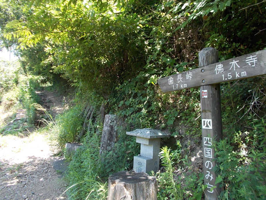 12:30仏木寺を後にして第43番札所明石寺に向かった。四国のみちの標柱を見ると歯長峠を越えるようだ。佛木寺から歯長峠まで3.2kmだ。アスファルト道から山中に入ると涼を感じる。特に馬の背では、風が良く通り気持ちが良い。