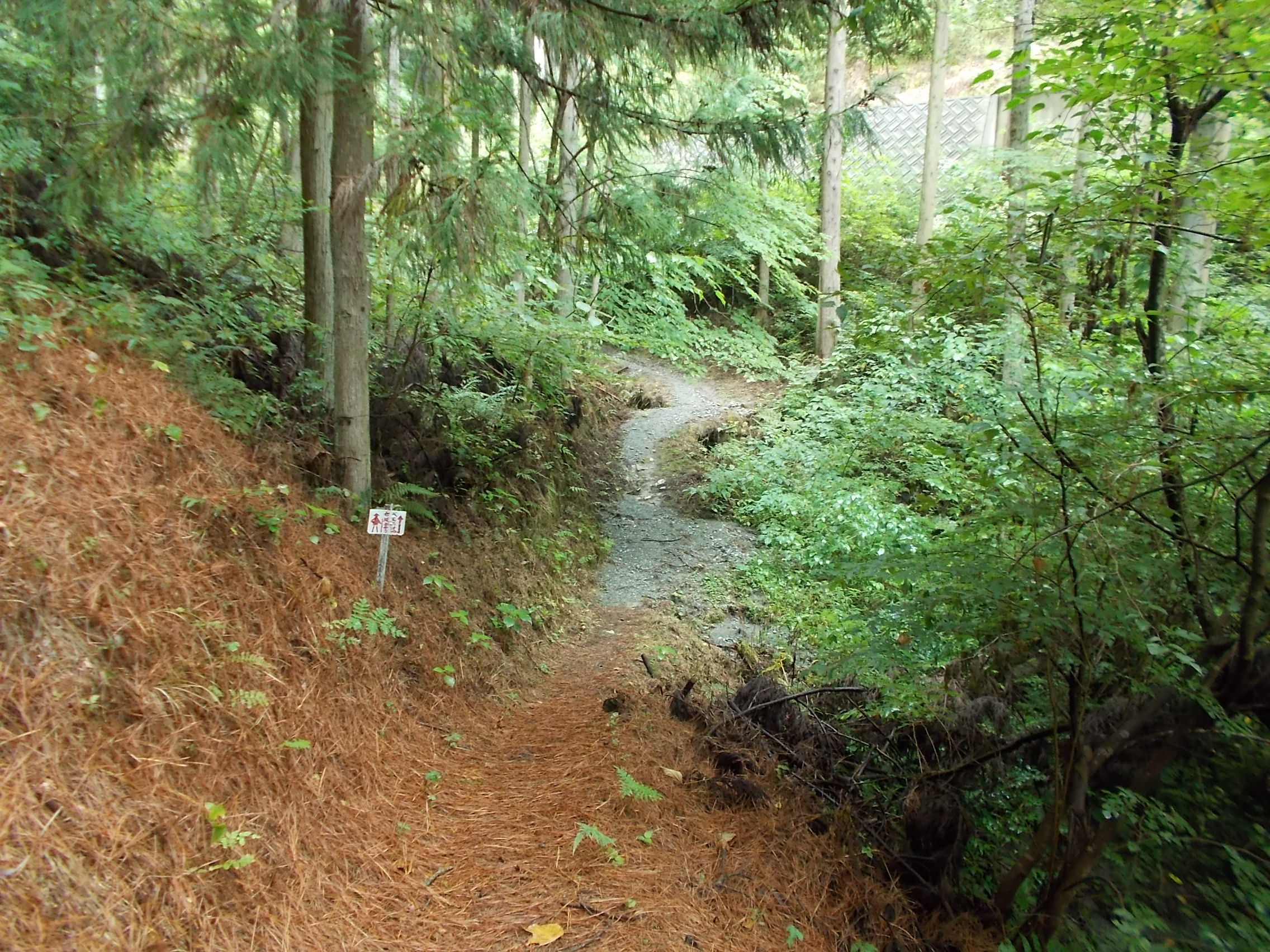 7時過ぎには、前回、区切りとした三島公園下の看板前に到着した。標柱には、三角寺三十丁と刻まれていた。4kmもないようだ。途中の表示板によれば、今回は、「横尾~積善ルート」を歩くようだ。