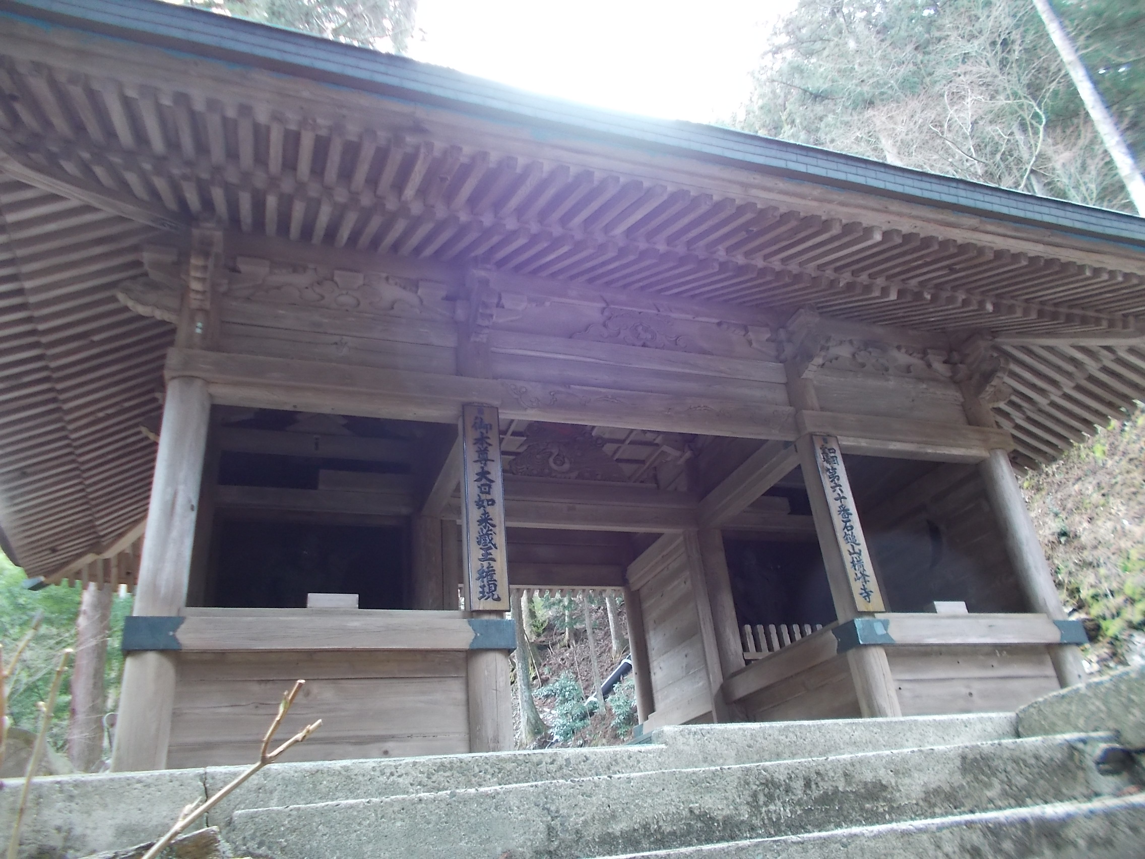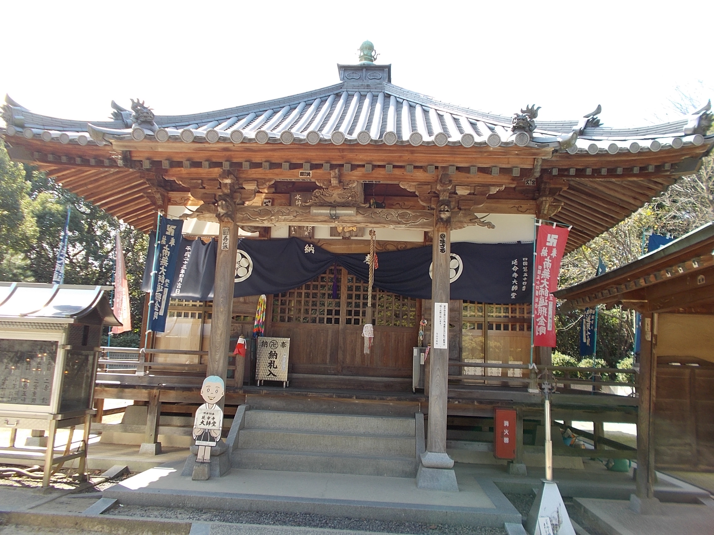 天正13年(1,585年)豊臣秀吉による四国攻めより全山を焼失している。本堂の手前に高さ1mほどの成就石があり、中央下の30〜40cmの穴に金剛杖を通せば願いが叶えられるという。残念ながら気がつかなかった。