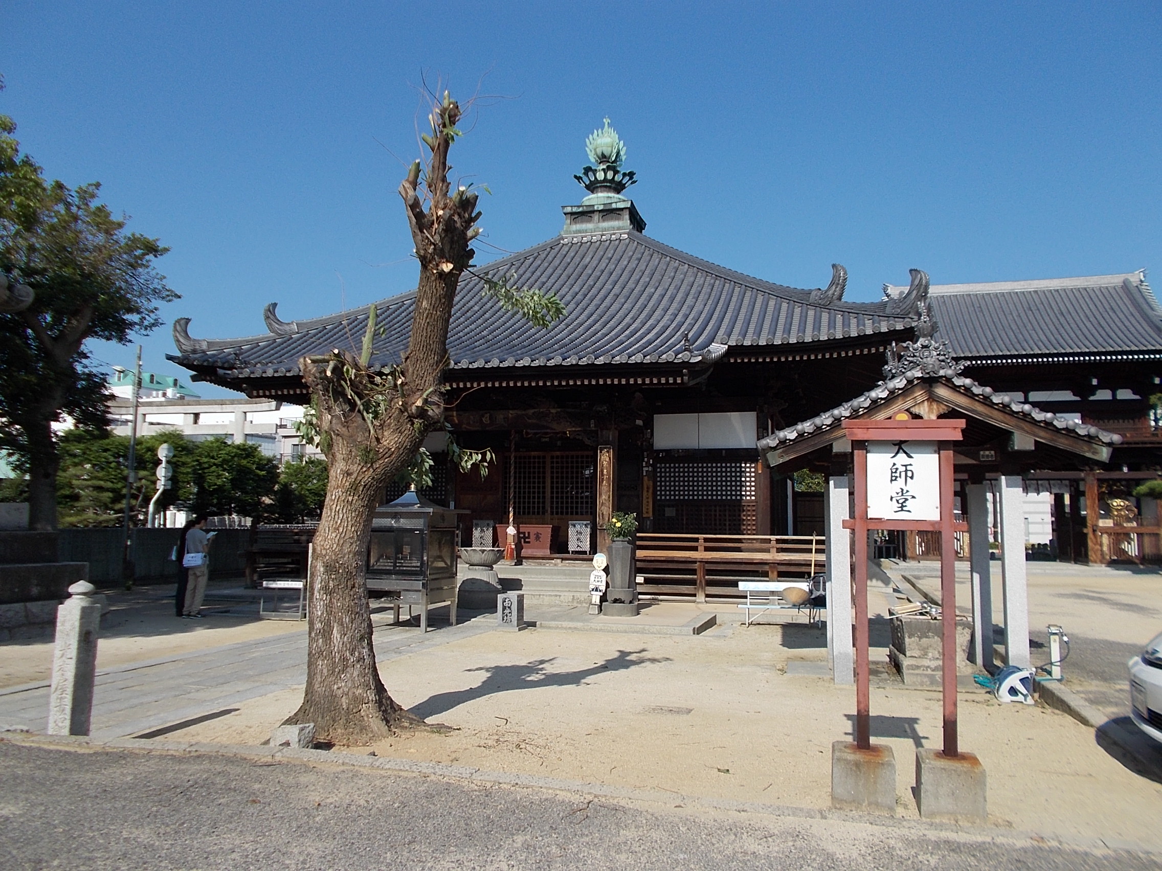 15時前には、第61番札所香園寺(こうおんじ)に到着した。近代的な建物の御堂である。2階に大きな大日如来が祭られ、その横に大師像があった。境内には、本堂と大師堂を兼ねた近代的な大聖堂があり、傍らには子安大師堂がある。古くから子安大師として親しまれているようで、納経帳には、子安大師の印も押されていた。