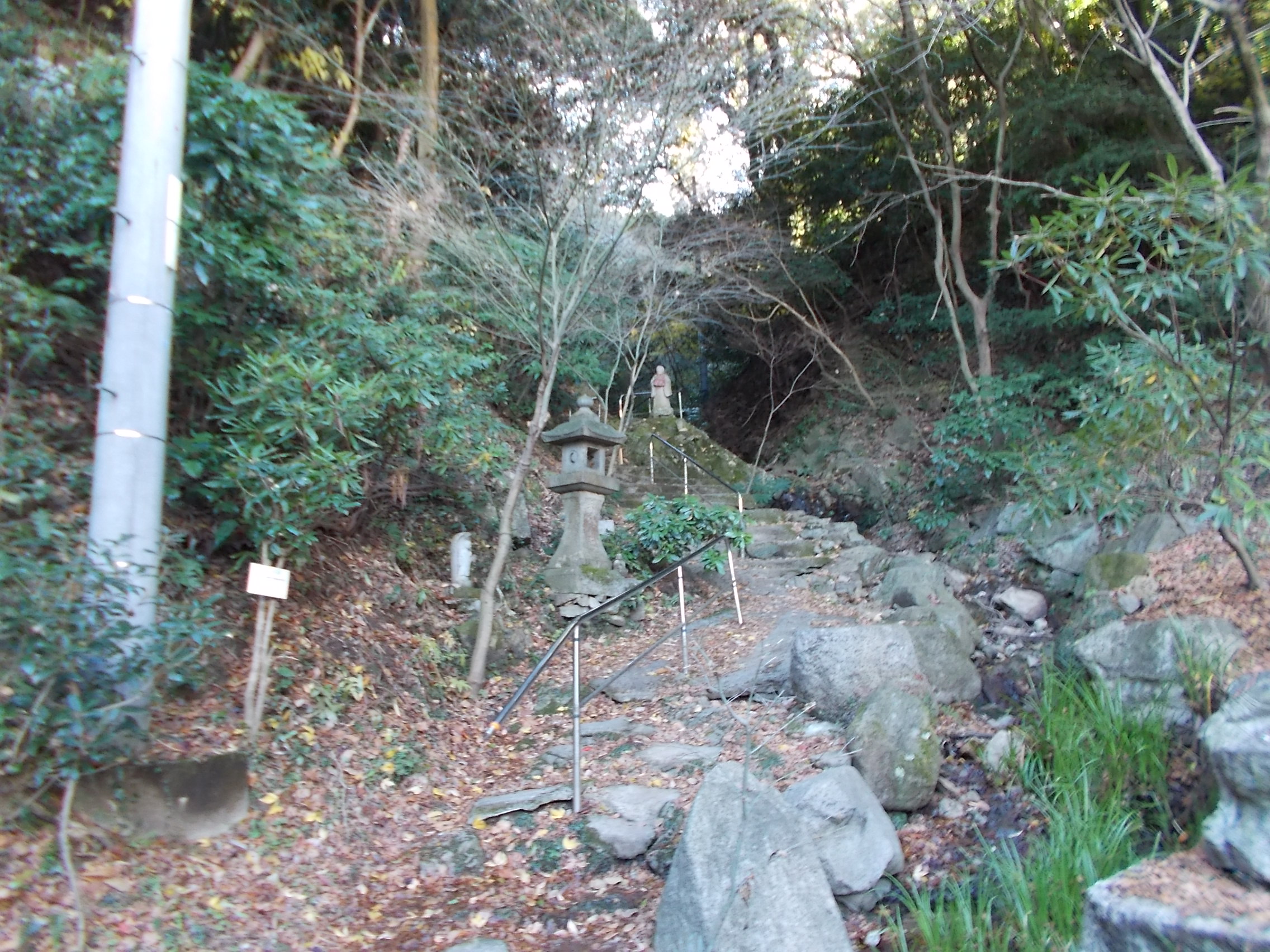 16:50第43番札所明石寺を下山した。山門前から山道に入る遍路道に向かった。地図では、山越えで近くなるはずである。途中、道に迷ったと思ったが、17:15松屋旅館に到着した。