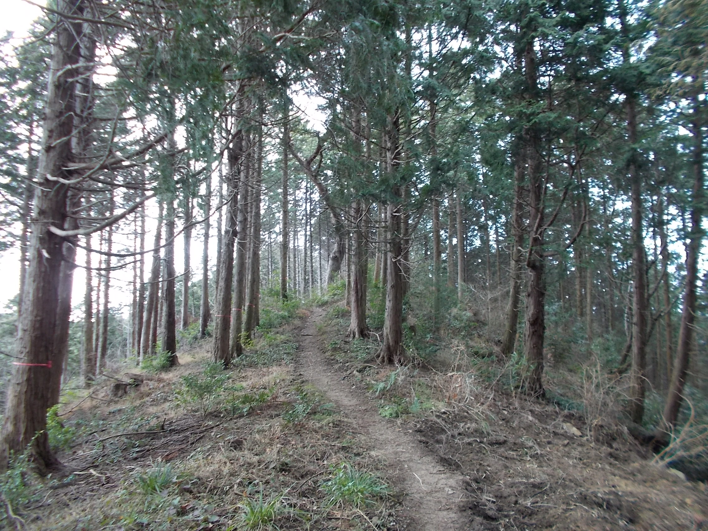 13時半頃には、下山道の途中に休憩所を通過する。14時、アスファルトの道に出た。舗装道の端には駐車場がる。ここに車を止めて上る方もいるのだろう。