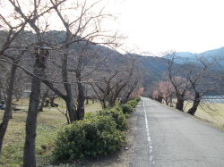 風が出て来た。13時半過ぎ、峠付近の民家の庭先に見事に咲いた桜があった。桜の横の自動車道にはベンチが置かれ、休憩できるようになっていた。暫しの桜見物の休憩とした。