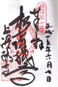 このお寺の納経帳には「大悲閣」の文字と朱印(宝印)。大悲○の殿、閣は、観音様の居る場所を指すものとのこと。閣は、高所や舞台のような場所、殿は、平地を意味するとのことである。清水寺は、「大悲閣」とのこと。本堂は、改築中のため、仮設のお堂で参拝。境内は広く、奥には「賽の河原」がある。当日は、雨のため人影はなかったが、蛇が出たので途中で引き返す。納経所で朱印を頂くとき、右の人のほうの方が字が上手いと勧めてくれた。